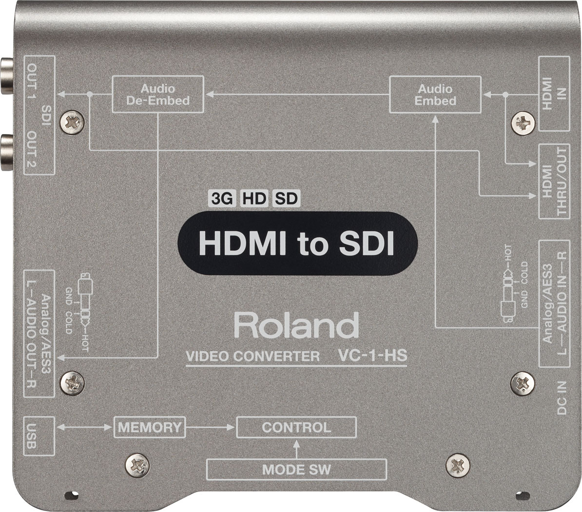 SDI端子に入力された信号を、同じ解像度でHDMI端子から出力します。SD-SDI、HD-SDI、3G-SIDLevelA、3G-SIDLevelB信号を入力可能です。
